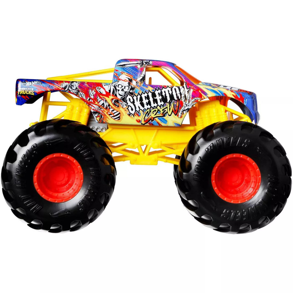 - Outrageous assortment of 1:24 scale Hot Wheels Monster Trucks with durable die-cast metal bodies!