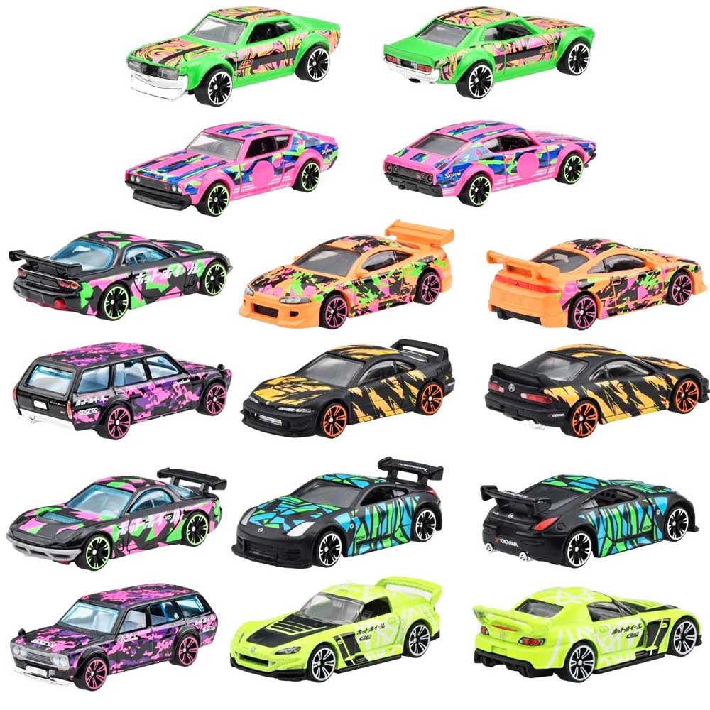- Each die-cast vehicle is 1:64 scale and features exclusive wheels that enhance the styling and high deco coverage to take these cars to the next level.