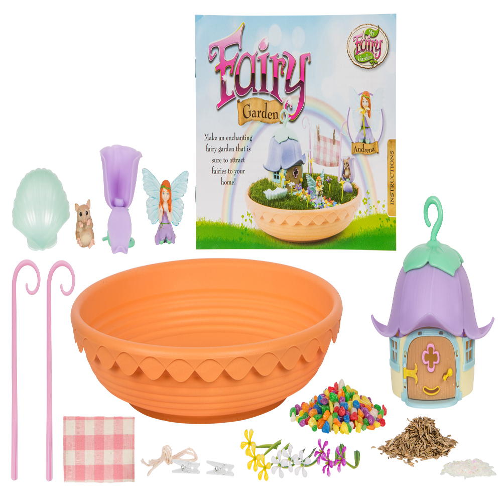 Plant and grow a field of real grass around your fairys sweet little cottagejust add soil and water! As your garden comes to life, decorate it with magical elements including an oyster shell water feature, fairy flowers, and even a miniature clothesline complete with a blanket and carpet.