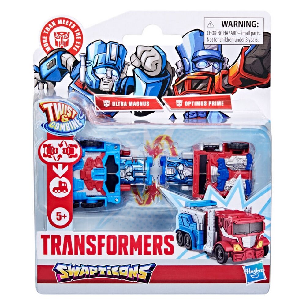 Unleash epic creativity and endless fun with the Transformers Swapticons Optimus Ultra Magnus set! This unique set features two fan-favorite characters Optimus Prime and Ultra Magnus in an all-new, twistable mini format.
